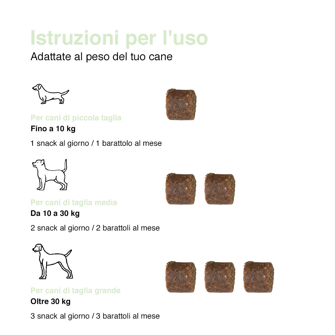 Dopo una cura di antibiotici, il nostro cane ha avuto seri problemi di digestione. Ora gli do questi biscotti come parte della sua routine quotidiana – la digestione si è regolarizzata e notiamo anche un migliore benessere generale.